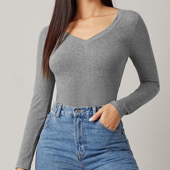 Model: Kaos polos wanita lengan panjang kerah V